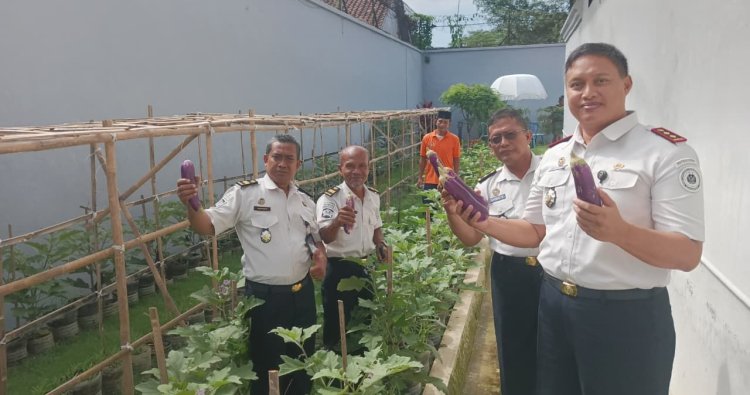 Rutan Kebumen melaksanakan kegiatan panen terong di area perkebunan sebagai bagian dari program pembinaan kemandirian. Kegiatan ini melibatkan petugas Rutan dan warga binaan yang selama ini secara rutin merawat tanaman terong sejak masa tanam.