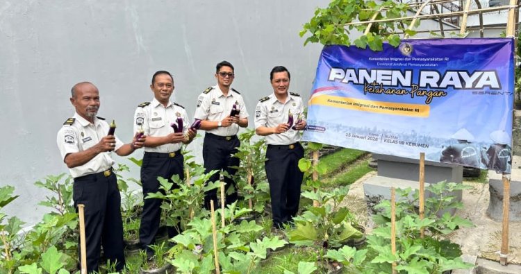 Kebumen - Rutan Kebumen mengikuti Panen Raya Serentak Kementerian Imigrasi dan Pemasyarakatan, yang diadakan secara virtual pada Kamis (15/01/2026). Rutan Kebumen telah berhasil membudidayakan tanaman kangkung, terong, dan kacang panjang di lahan pertanian brandgang yang ada di dalam rutan. Hasil pertanian ini telah menghasilkan 1, 5 kwintal sayuran yang dipanen.
